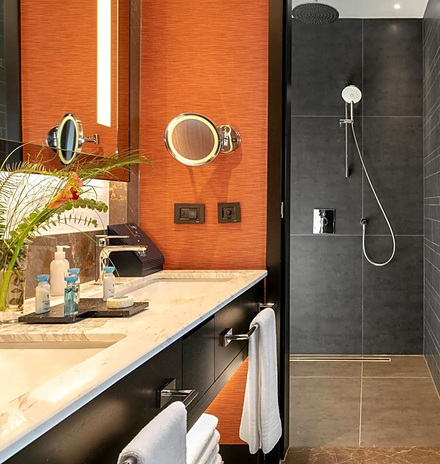 This double room features a infinity pool. Featuring free toiletries and bathrobes, this double room includes a private bathroom with a shower, a bidet and a hairdryer. The spacious air-conditioned double room features a flat-screen TV with cable channels, soundproof walls, a mini-bar, a tea and coffee maker as well as sea views.